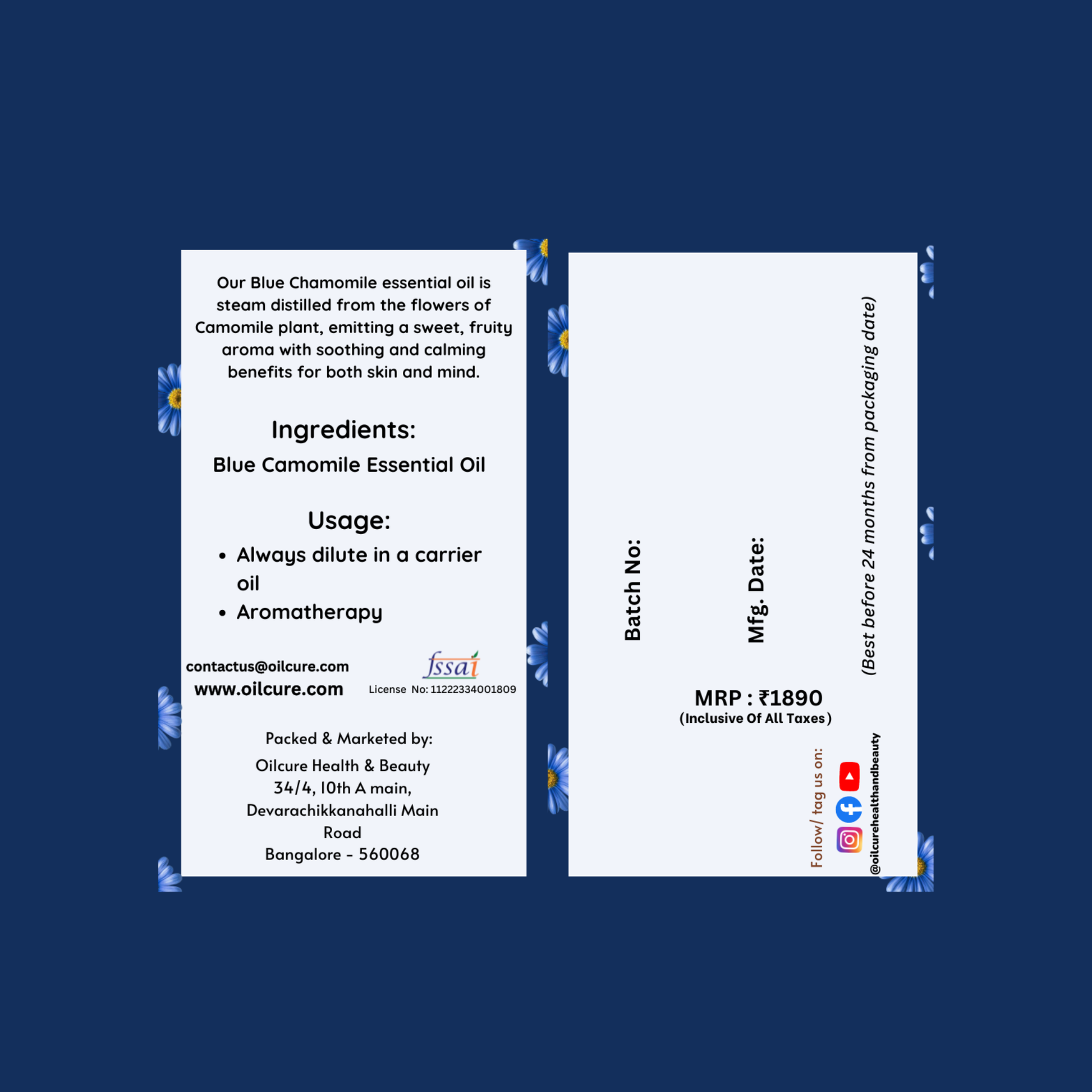 Blue Camomile Oil, also known as German Chamomile, is steam-distilled from the flowers of Matricaria chamomilla. It boasts a rich blue color and a sweet, herbal aroma. This oil is renowned for its powerful anti-inflammatory and calming effects.