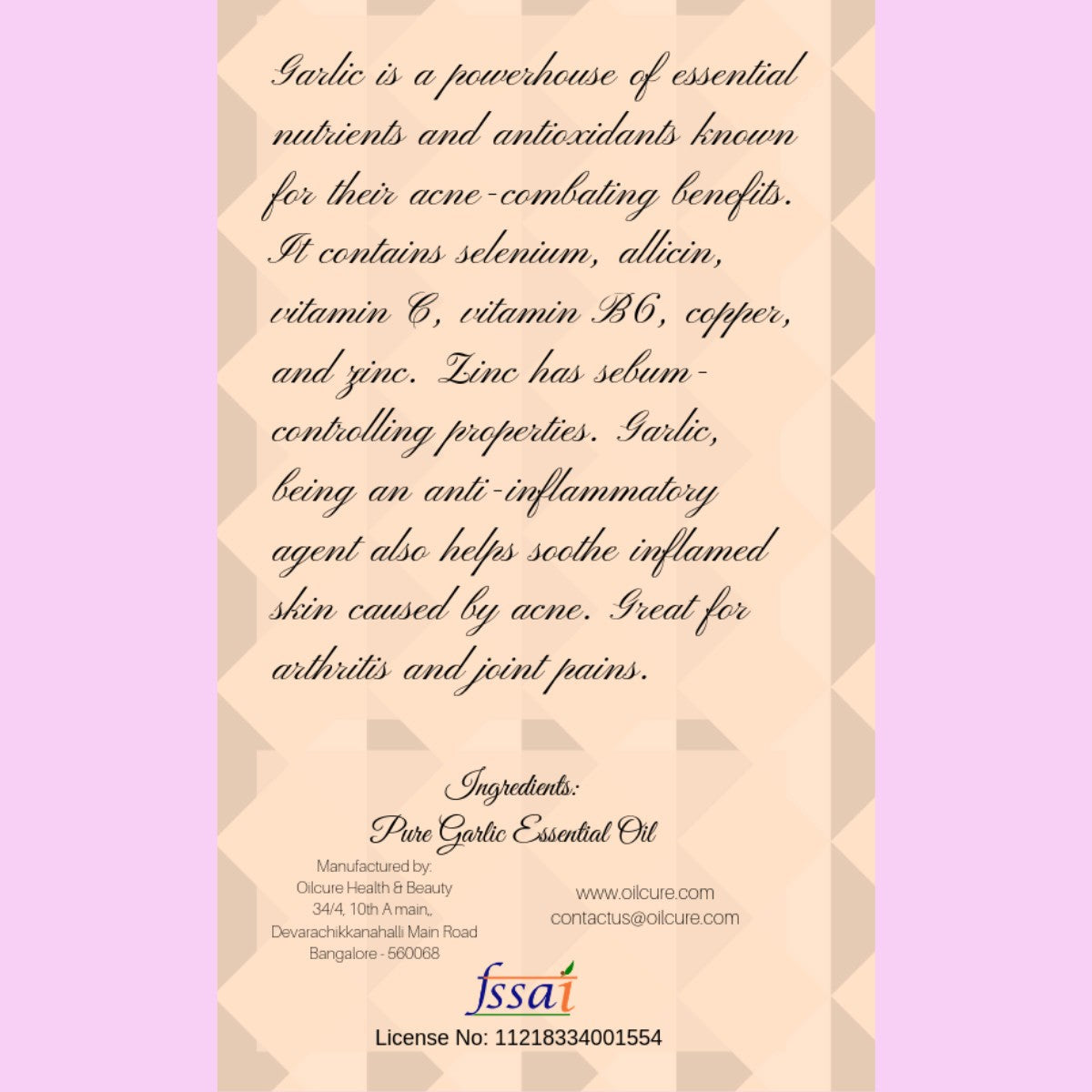 Garlic is full anti-oxidants and nutrients selenium, allicin, vitamin C, vitamin B6, copper, and zinc. Zinc has sebu controlling properties, which itself is the cause of acne. And the anti-inflammatory property helps soothe the skin.