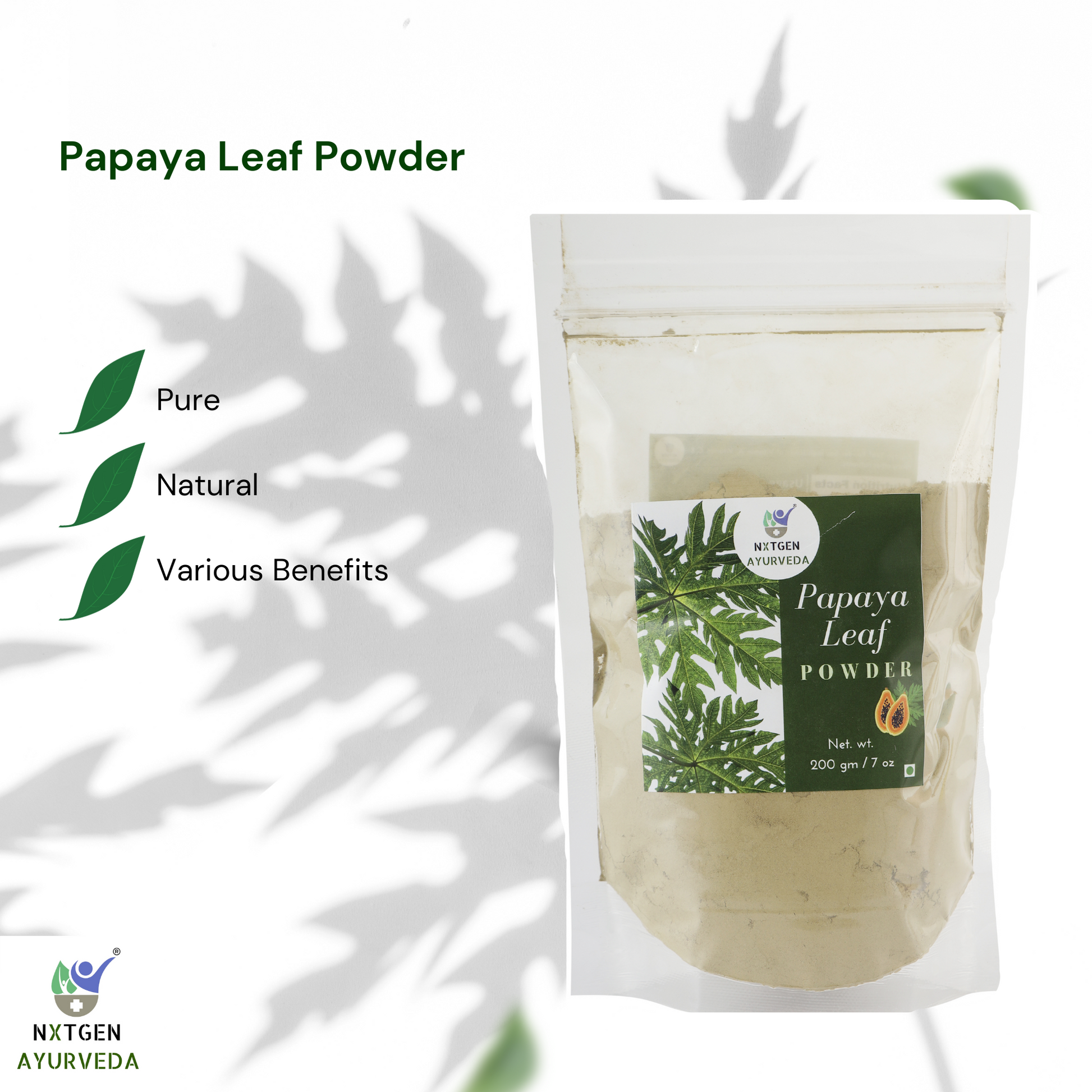 Papaya leaf powder is very good in Dengue fever to get platelet back to normal. Papita leaves has strong anti malaria properties also. Good for Liver, Digestion. Papaya leaves are rich in vitamins and minerals, such as vitamins A, B1, C and E, protein, calcium, phosphorus, iron and water.