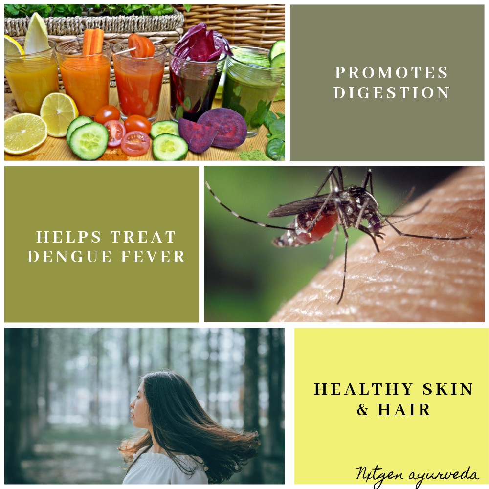 1. Fights Dengue fever: Dengue is a deadly fever. in this fever, the patient complains of high fever, headaches, rashes, joint or and muscle pains. Platelets fall to a great extent because of this viral disease. There is no specific drug to treat this disease. Most of the time doctors give painkillers and aspirin. Both have side effects. In contrast, papaya leaf juice is very effective in treating dengue and its platelets reclaim, without any side effect.