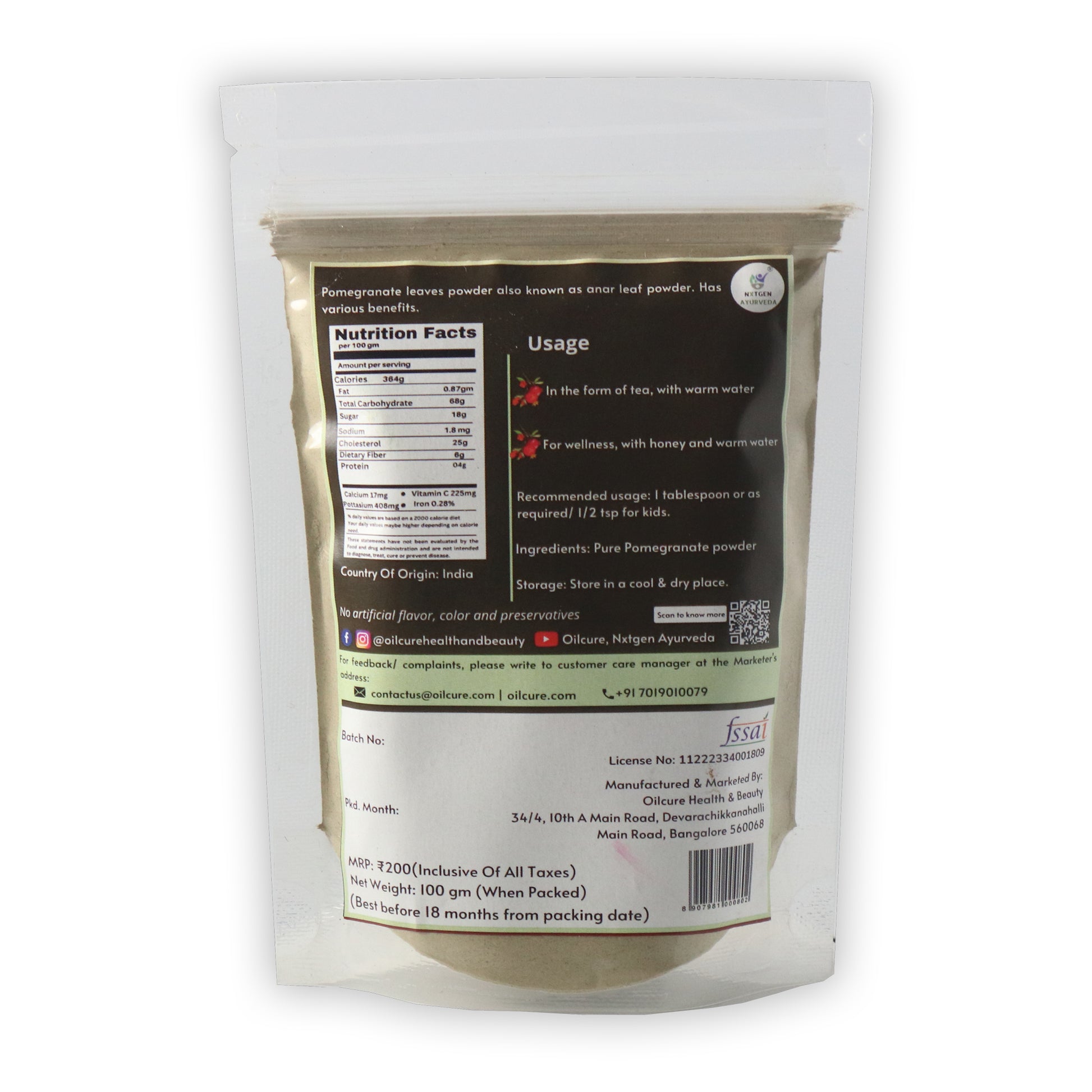 Pomegranate Leaf Powder or Anar patta powder called Punica granatum in Latin has a lot of health benefits to offer. These are hygienically dried anar leaf powder.